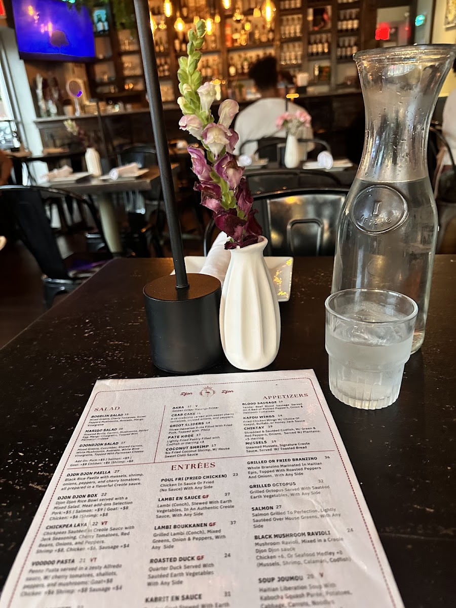 Welcome to DjonDjon, a vibrant Haitian restaurant nestled in the heart of Brooklyn, NY. At DjonDjon, the star of the menu is undoubtedly the Djon Djon Paella, a delectable dish featuring black rice mixed with fresh shrimp and mussels, all enveloped in a savory creole sauce. For those seeking warmth, the Legumes D'Aubergines offers a comforting vegetable stew, perfectly paired with fried sweet plantains.